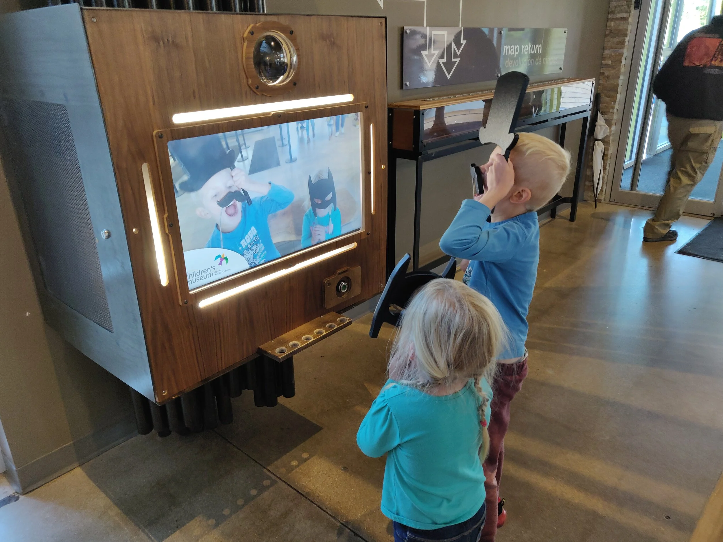 The Entry Tree welcomes you to the museum with the smiling faces of visitors on 30 digital “leaves” hanging overhead. Sit on the bench, press the button and 3-2-1-flash, your photo instantly joins the other smiling faces above!